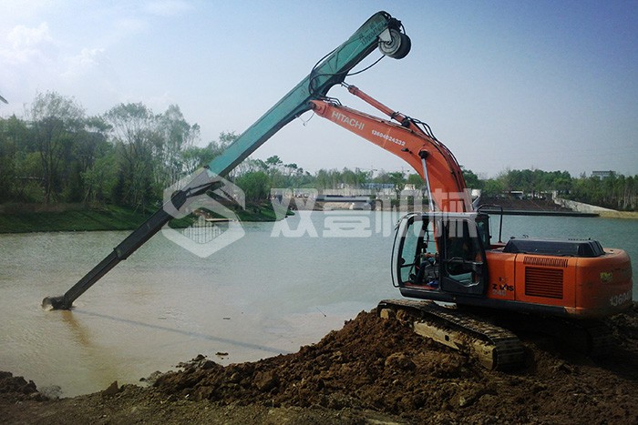 雙壹公司備有多臺長臂挖掘機,15-200米各種長度,一站式解決您的深坑挖掘難題。