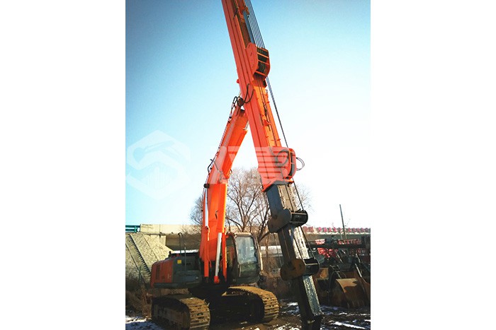 超長四節(jié)臂:總長度可達48米,臂內可再伸出3節(jié),施工深度42.5米,配帶貝殼斗1.8立方或挖掘斗1.0立方。