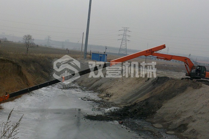 超長(zhǎng)四節(jié)臂:總長(zhǎng)度可達(dá)48米,臂內(nèi)可再伸出3節(jié),施工深度42.5米,配帶貝殼斗1.8立方或挖掘斗1.0立方。