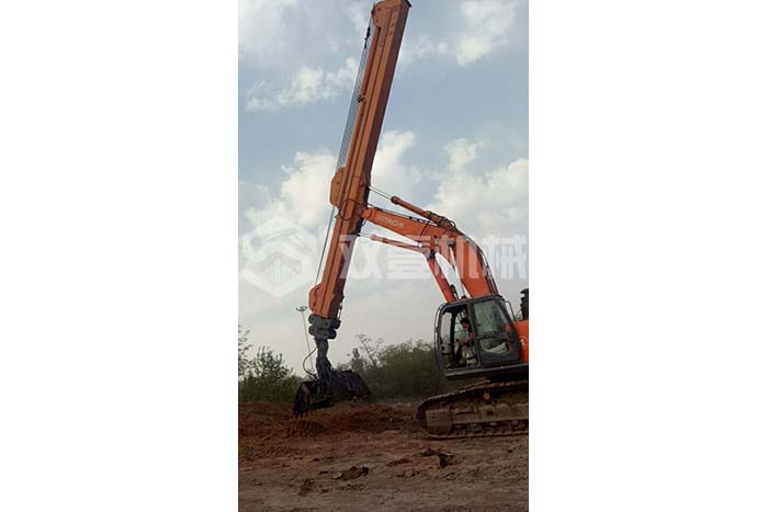 超長四節(jié)臂:總長度可達(dá)48米,臂內(nèi)可再伸出3節(jié),施工深度42.5米,配帶貝殼斗1.8立方或挖掘斗1.0立方。